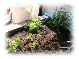 ミニハーブコーナーです実はちゃんとブロックかレンガで囲う予定だったのですが、