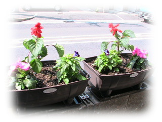 これが我が家の玄関の塀の上にあるお花ですぅ