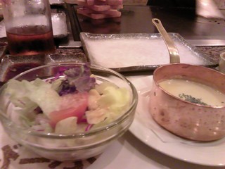 お肉食べてる後半で、ご飯とお味噌汁とお漬物がでてきて、