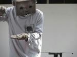 ひらったロボットにミルクを飲ませてあげるロボット。
