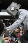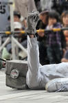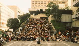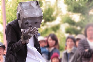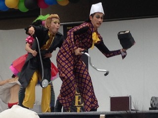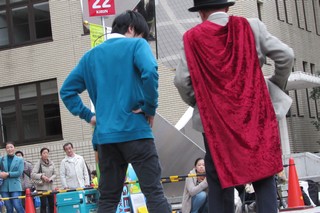 大道芸やってる会場の椅子3つ余ってて、そこ陣取って