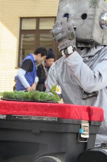 袋からキーホルダーをぶん投げて、みんなが「ほしい!ほしい!」ってやってた。