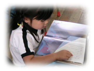 で、先生が読む文字を指で追うのです。
