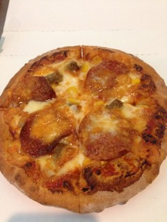うちの子たちはトマトソースに、ソーセージとサラミの乗った