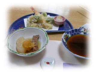 左下・・魚の揚げ物とふろふき大根の柚ミソ和え