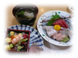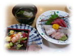 右下・・お刺身(ひらめ・マグロ・ハマチ・えび)