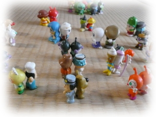 それも、アンパンマンの指人形をめっちゃ並べて、