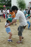 年中さんか年少さんが、園庭でお父さんと体操したあと、