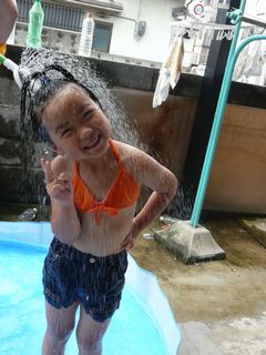 そのかわり、家のプールをだしてきて、水遊びさせました