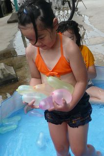 最終的に、旦那が2階のベランダから水の中に落として、水しぶきをたてて遊びました