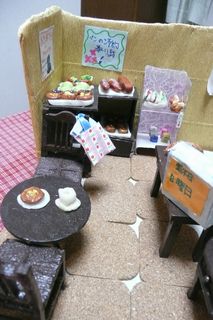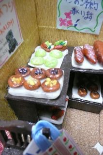 ドールハウスのパン屋さん。一応、貯金箱になってます。