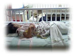 病室に入ると、すでにまおはベットに拘束されています。