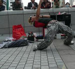 一人の男の人がマイムを始めたので、とりあえず一番前に!