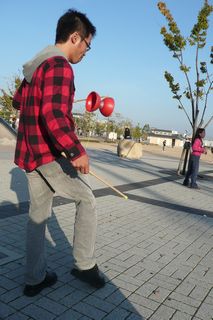 少しやらせてあげたけど、やっぱなかなかうまく回りません。
