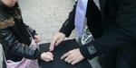 長女の掌に4つあるはずのコインが、なぜかふかずきんさんの手のなかから落ちます~。