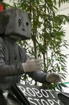 花を踏んでも何も思わないロボットは、仕事に没頭する。