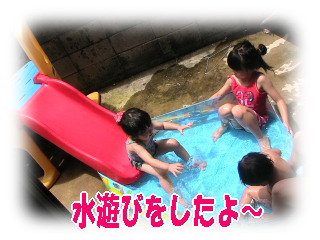 がふるかもしれないので、水をいれながらも子供たちを入れて遊ばせました。