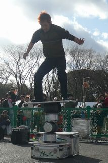 ありえへんバランス芸!ここにぼん・・って飛び乗るの。