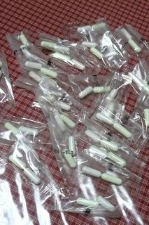 ま☆が夕食食べ終わる前に、カプセルに薬を詰めつめ・・・。