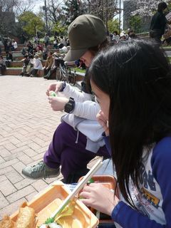 パフォーマンスが始まる前に、大急ぎで食べちゃいます