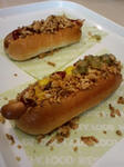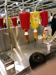 このホットドック、ケチャップとマスタードと、ピクルスと、フライドオニオンを自分でかけるんですが、