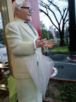 カーネルさんにカサ。。。なんか、のぞみさんも同じようなことを、せんとくんにさせてたような。。。日本1週の時、せんとくんにロボットの顔持たせて写真載せてたのを思い出した。。。