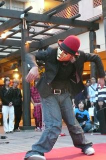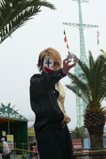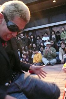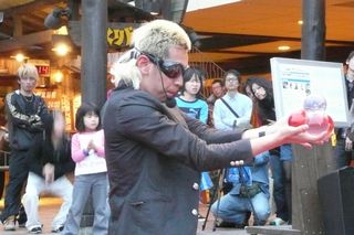 1回目は左右に同業者の大道芸人さんにハサまれていたけど、