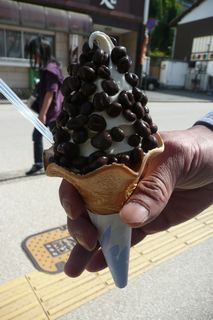 鹿のフン・・・に、見立てた麦チョコつきソフトでした。