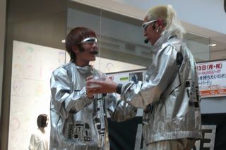 2人が入れかわりたちかわり、いろんな芸を披露して、拍手のパワーをためます。