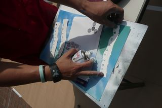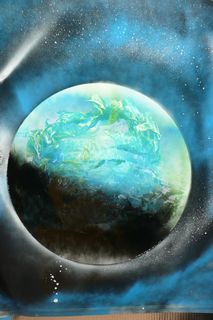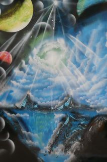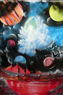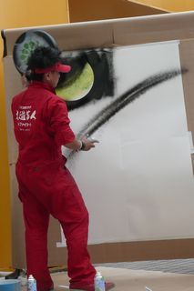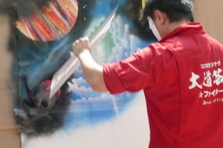 スプレーでおどんどん色をかさねていって、