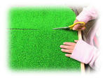 ホームセンターで、コルクボード(90×60㎝)と、人工芝を購入。