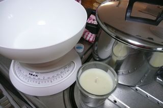 スケールと、鍋と、バニラのアロマキャンドル