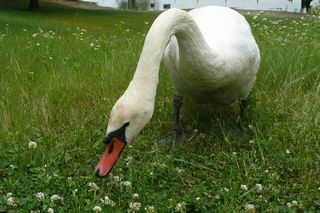 とんぼ池公園に入ると、いつも優雅に池に浮いている白鳥さんたちが上陸してた。