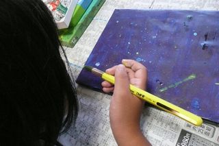 絵の具に水分をたくさんふくませて、
