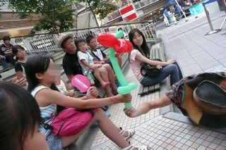 前に座っている女の子におもむろにバルーンをどんどん渡して行って、