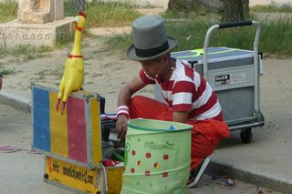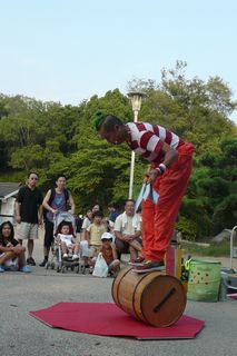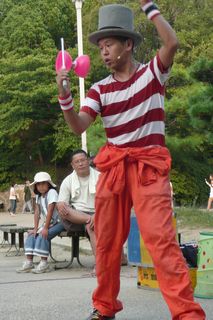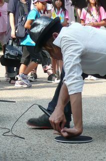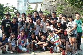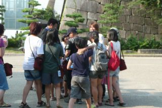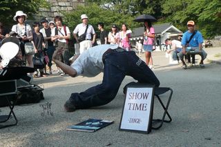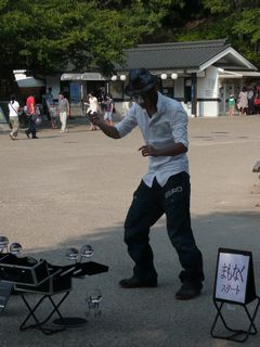 この団体様、ちょうとパフォが始まる前に天守閣からでてきて、