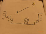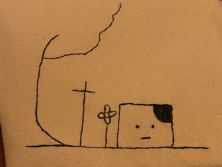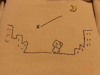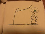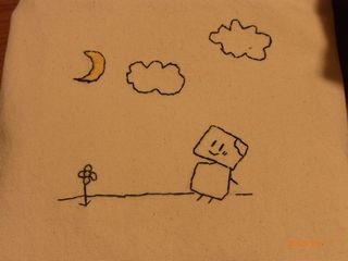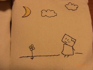 のぞみクンが書いたサインを見て、同じように書いて、それに刺繍しています。
