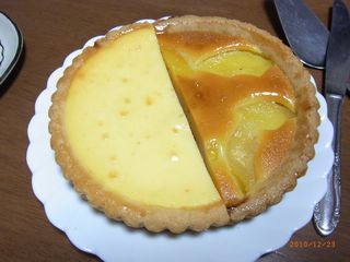 アップルタルトと、チーズタルトを買ってきた。