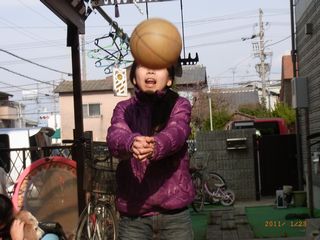 バレーやってるのは、バスケットボールの柄のゴムボールです(笑