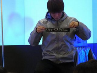 これ、あとで背中にはってもらって、舞台の下でスタッフみたいな顔して立ってました。