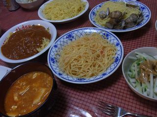 思った以上にパスタを数種類、同時につくって