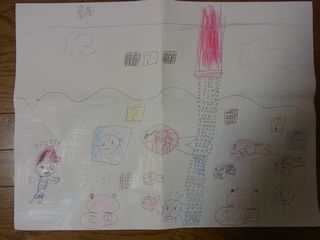 さっき、地震のメカニズムの絵を私が描いたからこの発想がでたんだろうな。