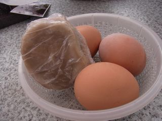 あったかい(熱い)ゆで卵と、蒸しモチGET!