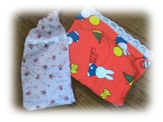 ミッフィーのほうは、スカートの丈が短かったので、横長に入れる、マジックテープタイプ。