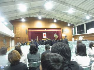 でした。学校の受付が始まるのは8時。式典は9時から。