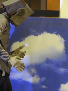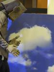 このステージのバック、もともとはこんな空に雲の絵なのね。