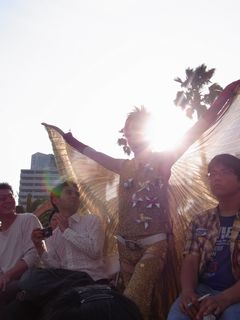 セクシーバタフライ(って名前だっけ?)で、客席から登場し、偽物のお金をばらまきながら舞台へ向かいます。