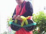 リンゴのお手玉でお手伝いした男性にバルーンのプレゼント