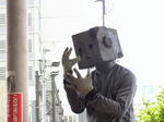 絨毯を立てさせて、エレベーターのパントマイム。