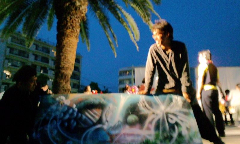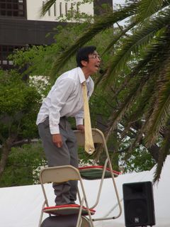 大道芸人ひろとくんと、渡辺あきらさんのコラボです。